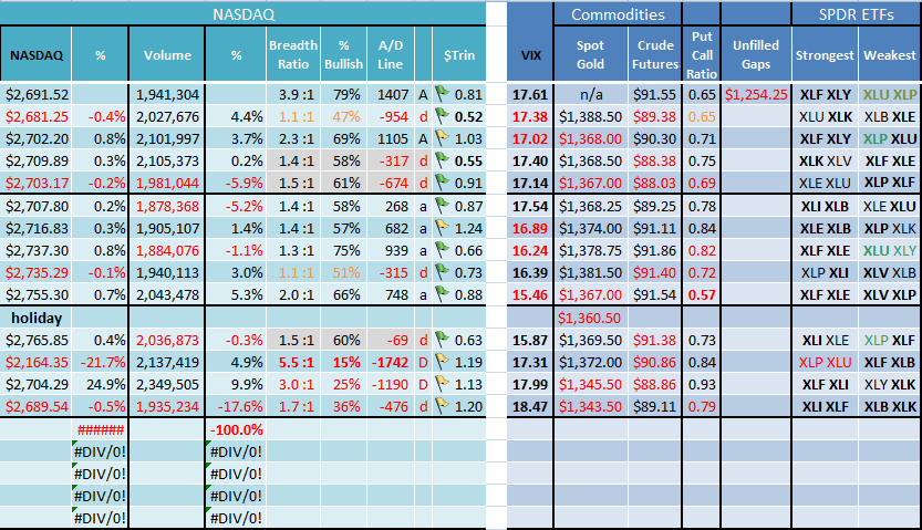 I record all my market data on this spreadsheet. It may be a little overwhelming at first, but after years of recording this data each night it becomes pretty easy to spot patterns and trend changes.