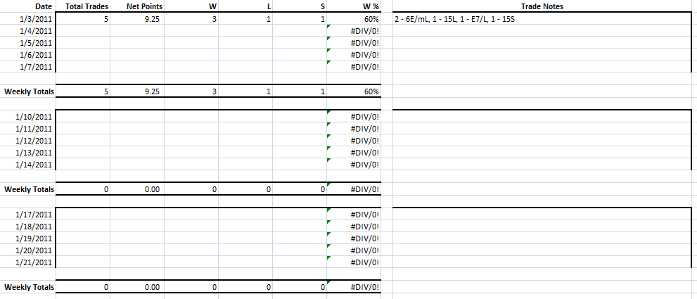 I use this spreadsheet for recording and tracking the effectiveness of my individual setups. I break out the setup and the win percentage to see what setups are working the best.